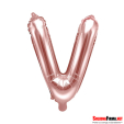 Balon foliowy Litera "V" - różowe-złoto - 35cm