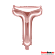 Balon foliowy Litera "T" - różowe-złoto - 35cm