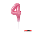 Balon foliowy na patyczku " Cyfra 4 " - Różowy - 13 cm
