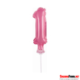 Balon foliowy na patyczku " Cyfra 1 " - Różowy - 13 cm