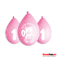 Balony Cyfra "1" + nadruk "Moje Urodziny" - różowe - 5 sztuk - 12'' - wiszące