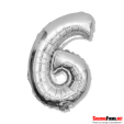Balon foliowy Cyfra "6" - srebrny - 45cm