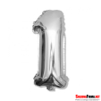 Balon foliowy Cyfra "1" - srebrny - 45cm
