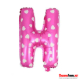 Balon Foliowy Litera "H" - różowy w serduszka - 45 cm
