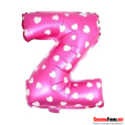 Balon Foliowy Litera "Z" Balon Foliowy Litera "Z", w kolorze różowym, z białymi sercami. Balon...