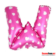 Balon Foliowy Litera "W" - różowy w serduszka - 45 cm