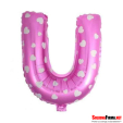 Balon Foliowy Litera "U" Balon Foliowy Litera "U", w kolorze różowym, z białymi sercami. Balon...