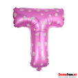 Balon Foliowy Litera "T" Balon Foliowy Litera "T", w kolorze różowym, z białymi sercami. Balon...