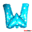 Balon Foliowy Litera "W" - niebieski w gwiazdki - 45 cm