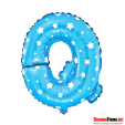 Balon Foliowy Litera "Q" - niebieski w gwiazdki - 45 cm