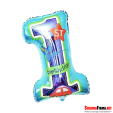 Niebieski Balon w Kształcie Cyfry “ 1” - z Motywem Urodzinowym - 18 Cali